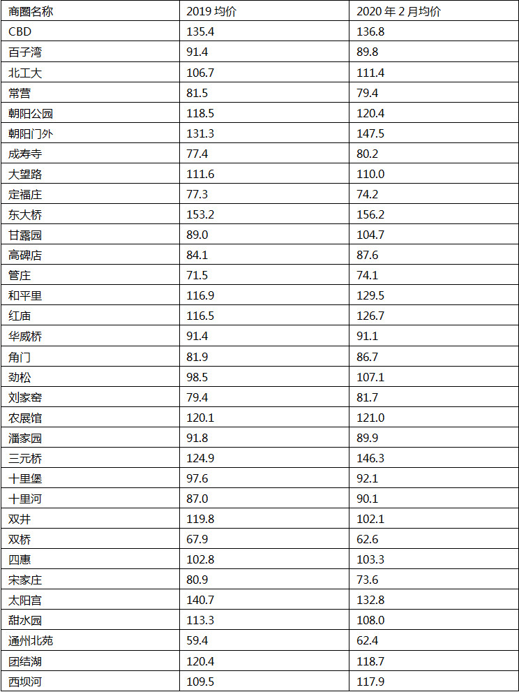 国贸工作生活圈辐射商圈租金水平(元/平米/月) 数据来源:贝壳研究院