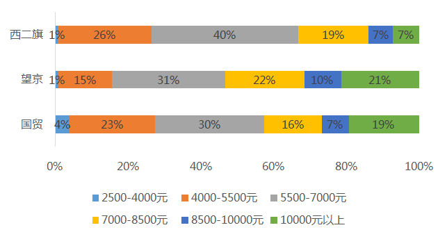 西二旗青年、望京青年和国贸青年租赁住房价格分布 数据来源:贝壳研究院