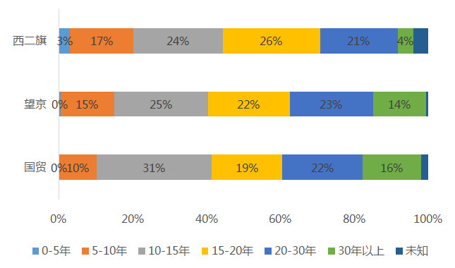 西二旗青年、望京青年和国贸青年租赁住房楼龄分布 数据来源:贝壳研究院