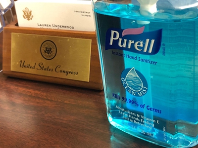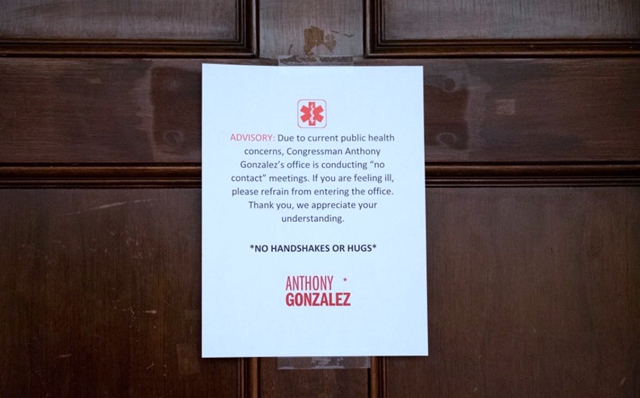 周一的美国首都华盛顿国会山到处可以看见这样的场景:各个国会大楼内都有增放的消毒洗手液;洗手间内是最新张贴的“教你如何正确洗手”海报;多个议员办公室门上贴着“请不要和国会和工作人员握手”或是“办公室已经关门”的通知。